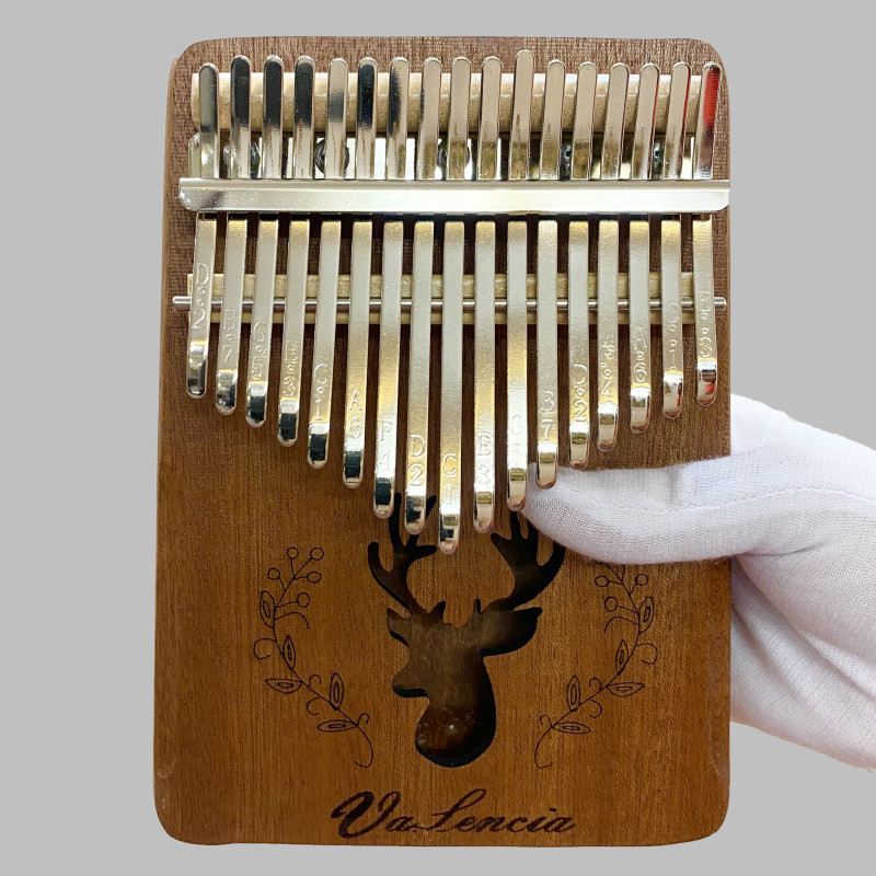 کالیمبا والنسیا 17 تیغه،که تعداد استانداردی از تیغه یا زبانه های فلزی را دارا بوده،از ساز های وارداتی درجه 1 میباشد،که با بالاترین کیفیت و استاندارد های جهانی ساخته شده. این نوع ساز تیغه ای،که خاستگاه اصلی آن کشورهای آفریقایی بوده،یکی از سازهای قدیمی این سرزمین به شمار می آید و بیش از هزار سال قدمت دارد.دارای هفده عدد تیغه ی فلزی است که وظیفه ی تولید صدا را برعهده دارند.این ساز با رنگ مات،از چوب اوکومه ساخته شده،که چوبی فوق العاده برای ساخت کالیمبا میباشد و در معدود ساز هایی از این چوب استفاده شده،که باعث میشود صدای حرفه ای را همزمان با ظاهر شکیل به همراه داشته باشد. تیغه های این ساز در بین ساز های وارداتی،از بالا ترین کیفیت برخوردار است که از فولاد ضد زنگ ساخته شده،تا بهترین کیفیت را به ارمغان آورد.این ساز همراه با جعبه کاور و چکش کوک تقدیم میشود.درمجموع این ساز برای هر کسی که تمایل دارد اصول نوازندگی کالیمبا را بیاموزد،و به خصوص برای افرادی که در نوازندگی این ساز مهارت دارند،انتخابی مناسب است. به دلیل طبیعی بودن چوب،ممکن است نقش و نگار چوب ساز با تصاویر متفاوت باشد.